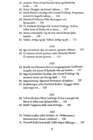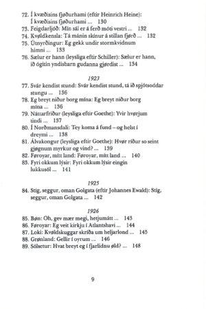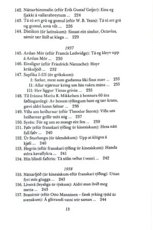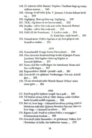 152. Úr Sturlungu (úr íslendskum): Upp at klúgva ákjøli… 240153. Hegrin (eftir franskari týðing úr kinesiskum): Handa stóra kavaflykra… 241