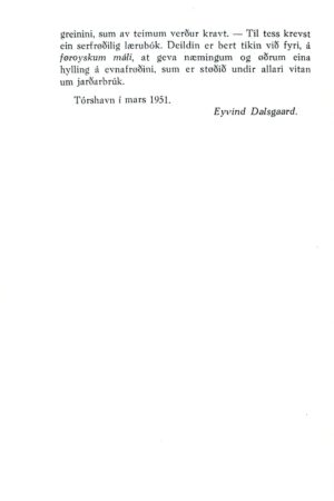 Búnaðarfrøði 1, Eyvind Dalsgaard, 1952