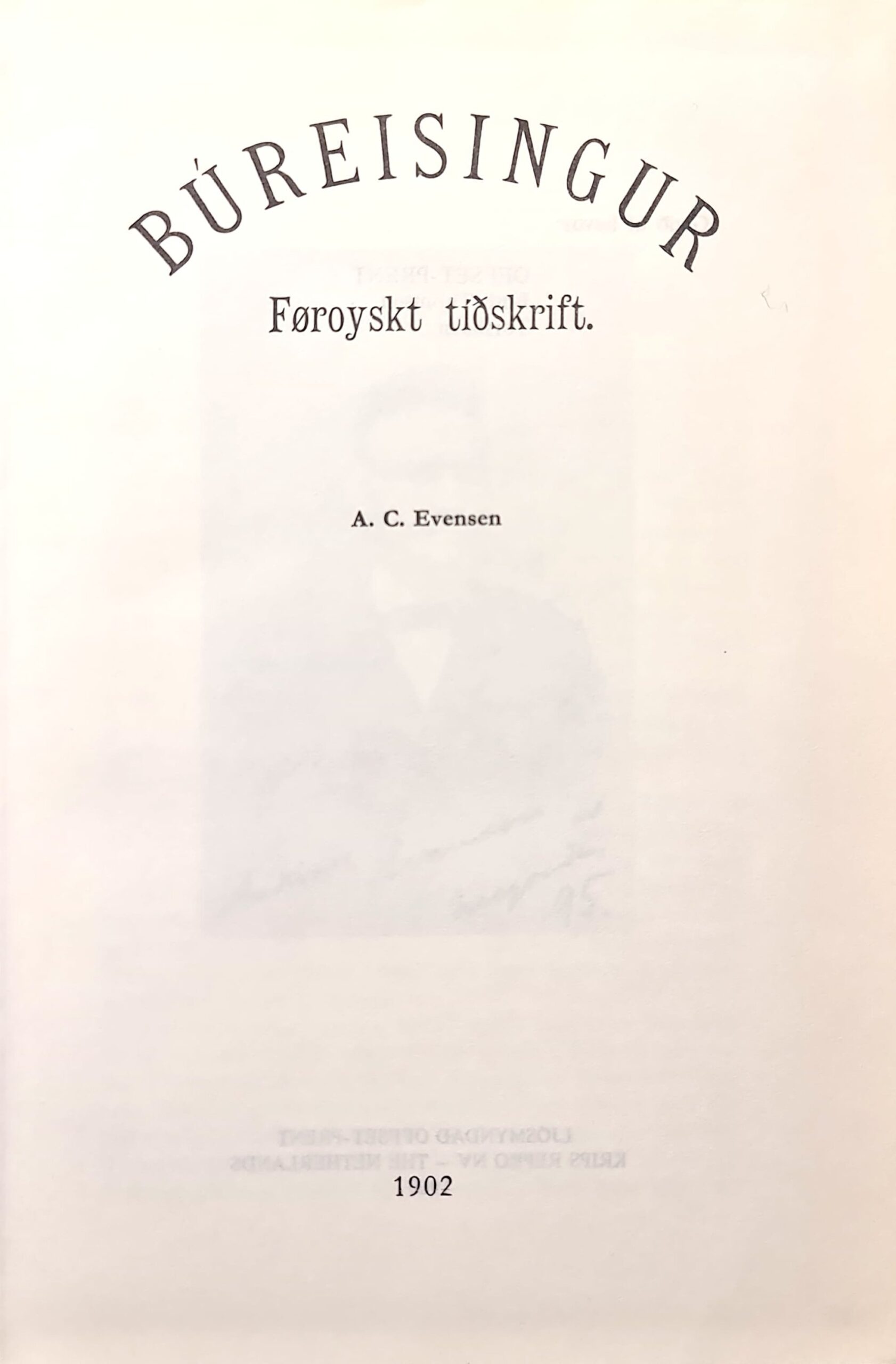 Læraraskúlan). A. C. Evensen: Savn til Føroyingasøgu í