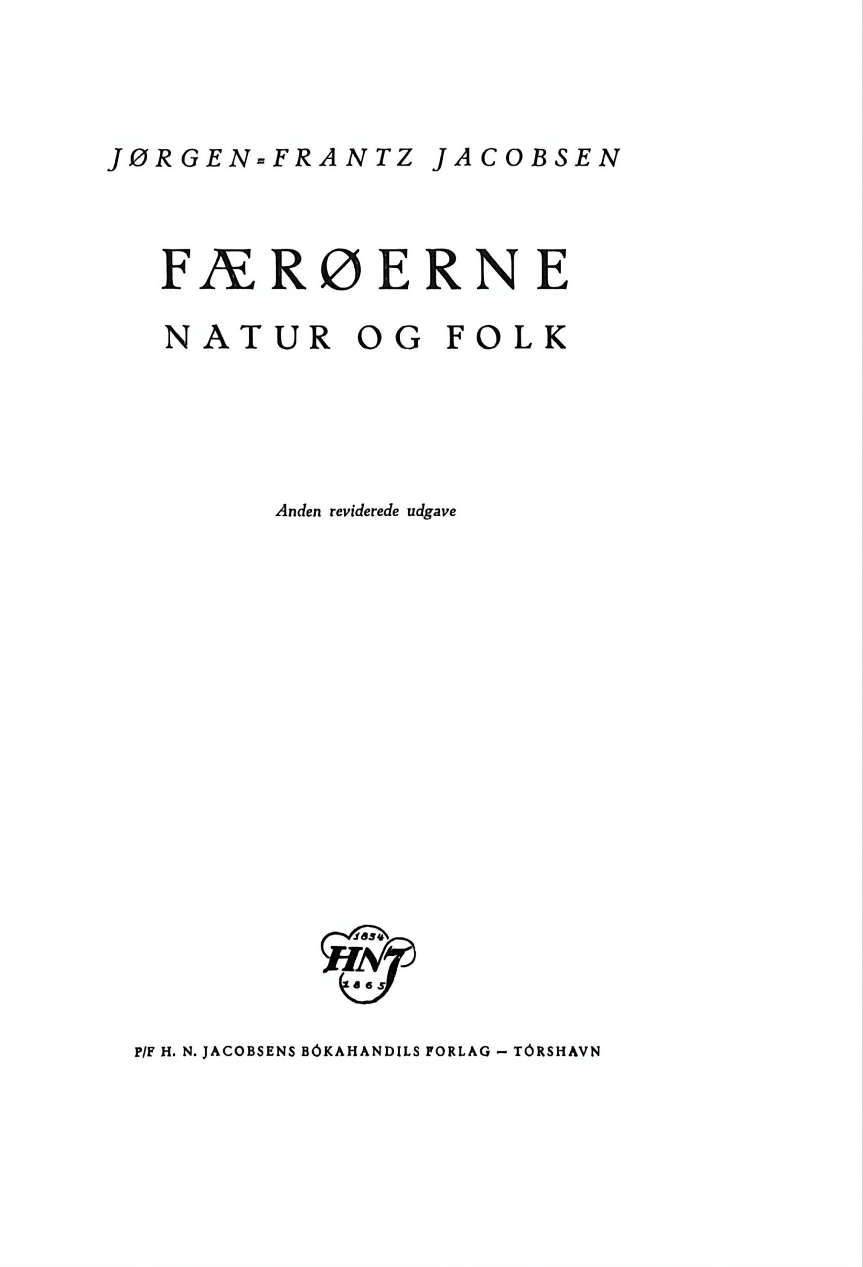 Færøerne – natur og folk, Jørgen Frantz Jacobsen, 2. udg. 1953