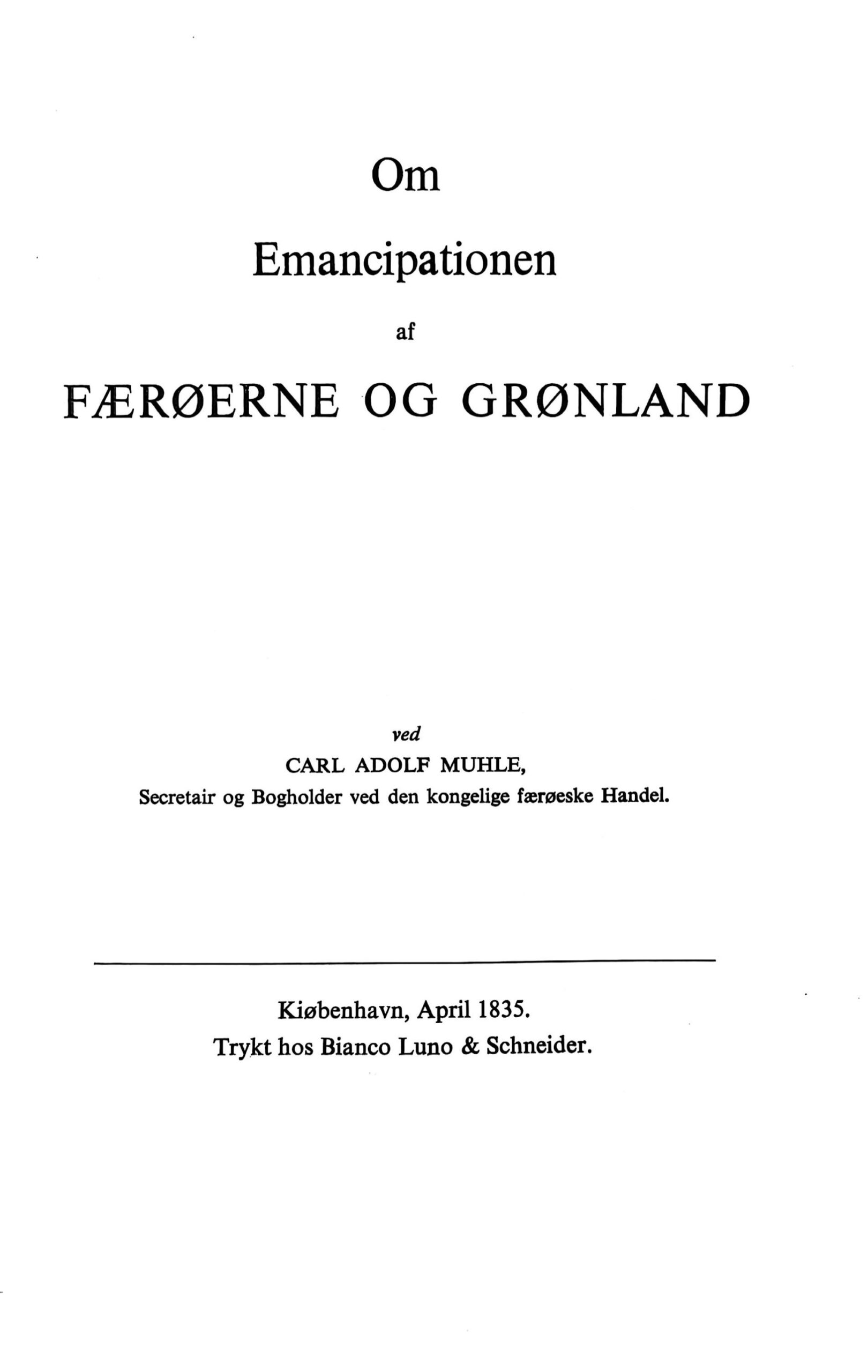 Om Emancipationen af Færøerne og Grønland Carl Adolf Muhle