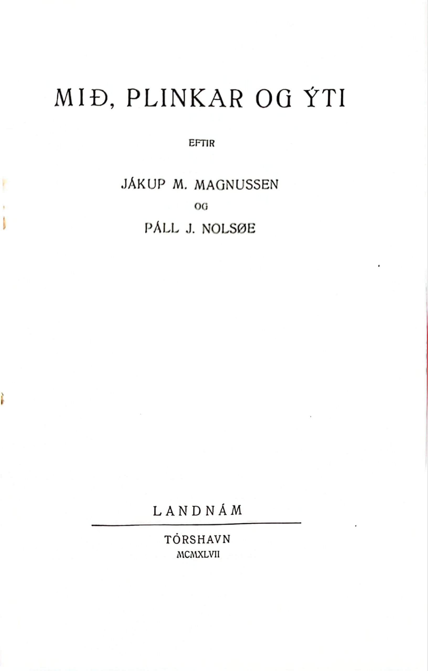 Mið, plinkar og ýti, fiskimið, Jákup M. Magnussen og Páll J. Nolsøe, 1947