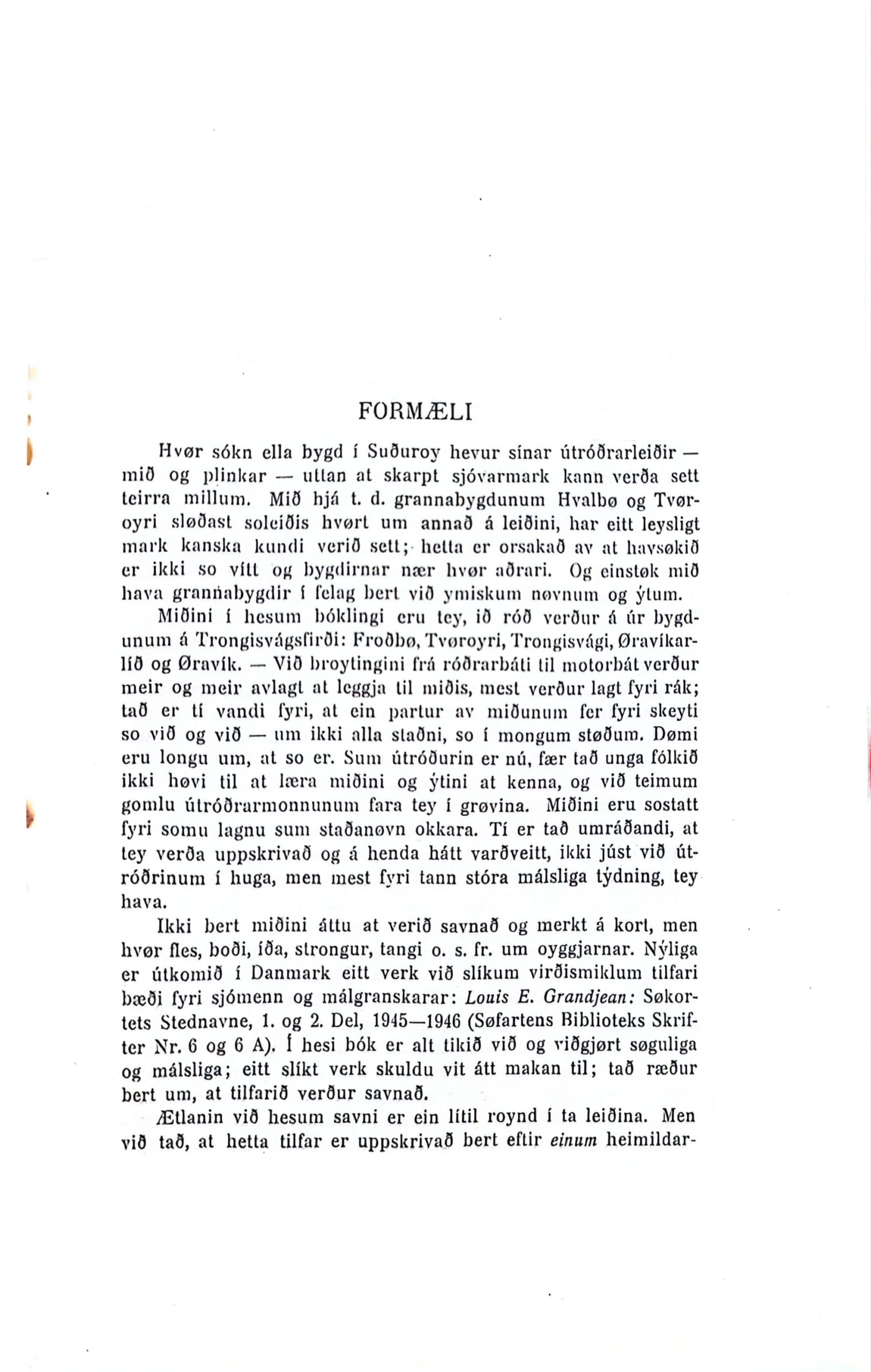 málgranskarar: Louis E. Grandjean: Søkor-tets Stednavne, 1. og 2. Del,