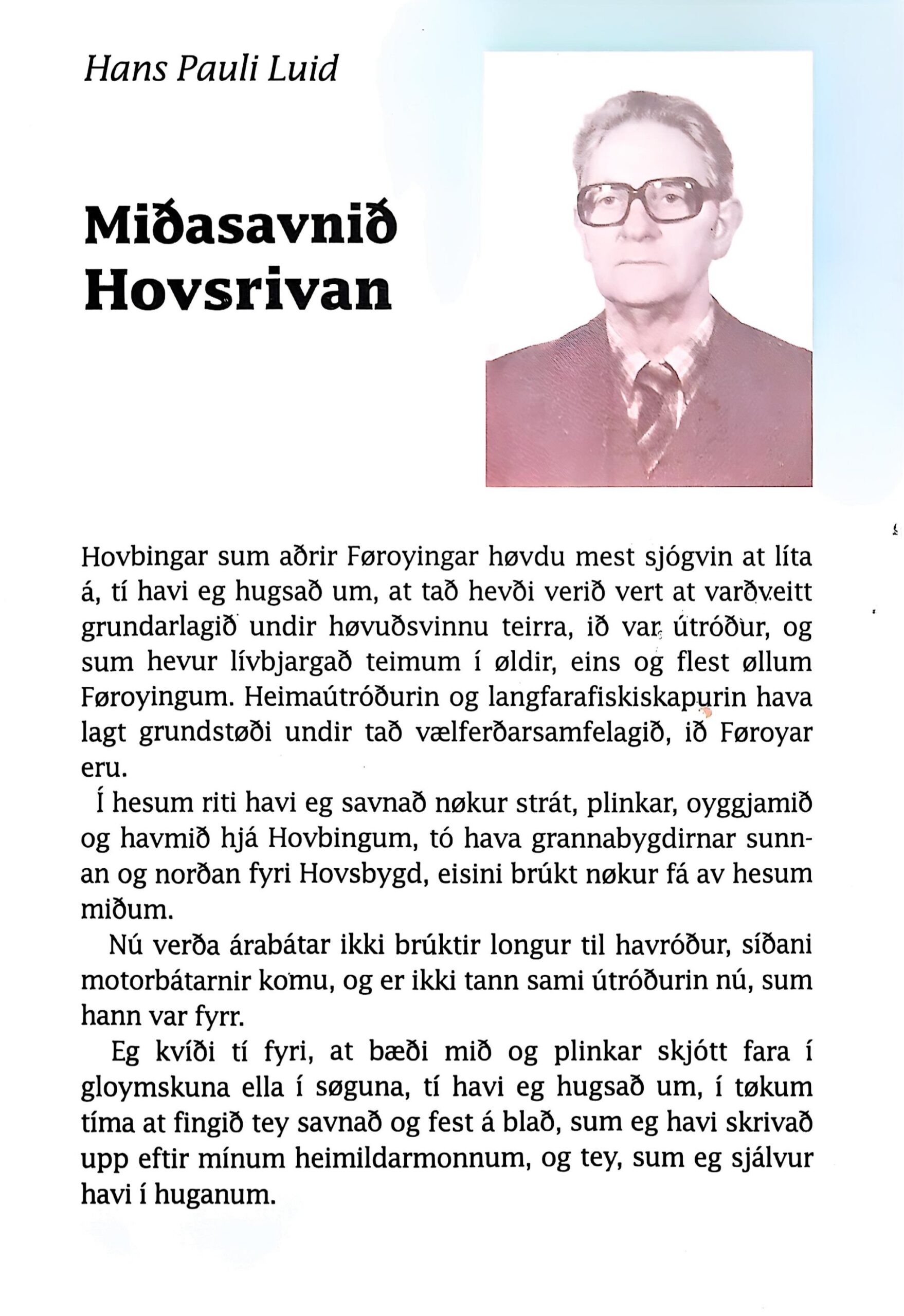 - Drangar,hólmar,flesjar, boðar, sker og grynnur í Hovsfjørði og norðurum fram við Hovslandinum