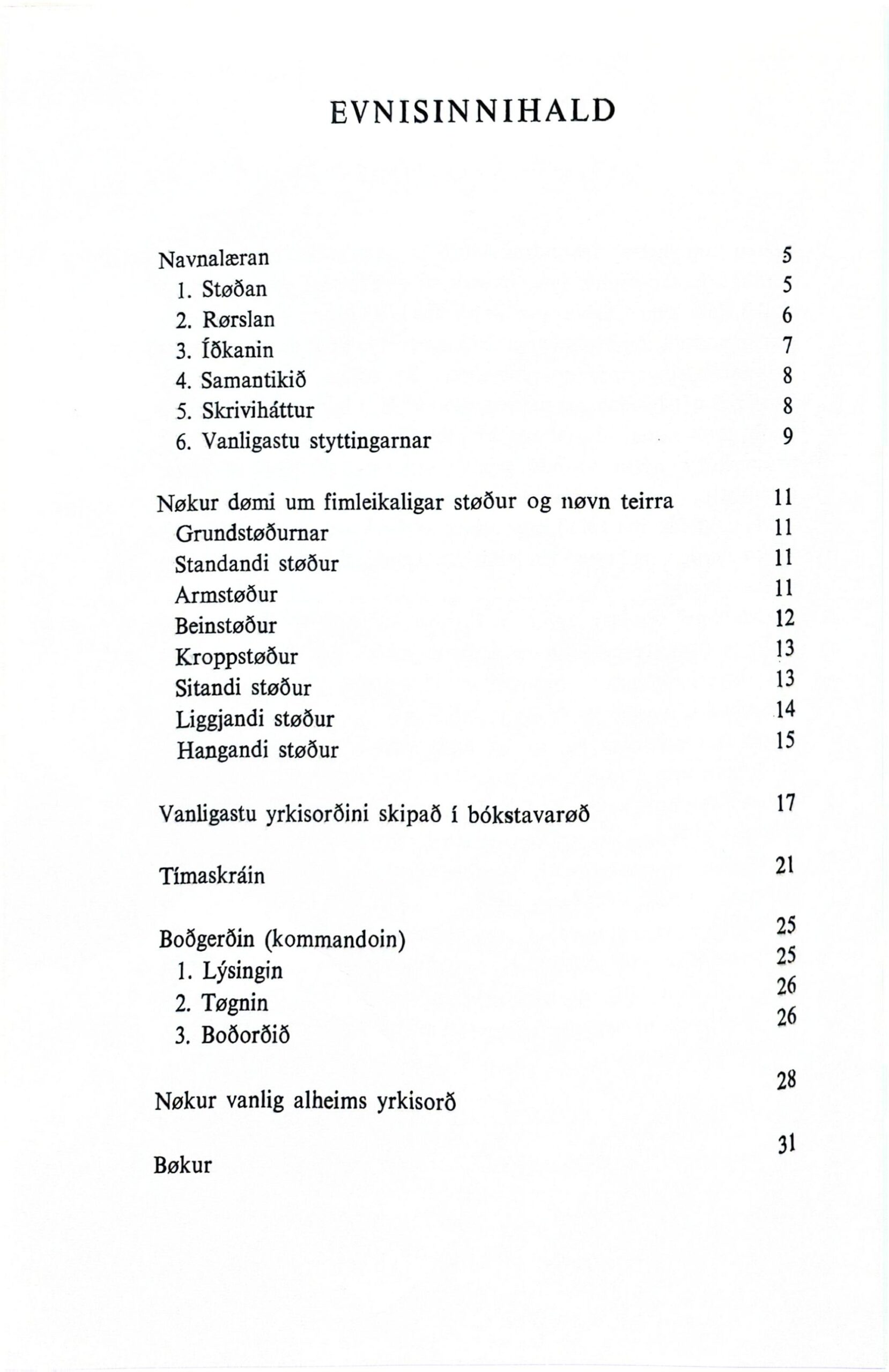 Nøkur dømi um fimleikaligar støður og nøvn teirra