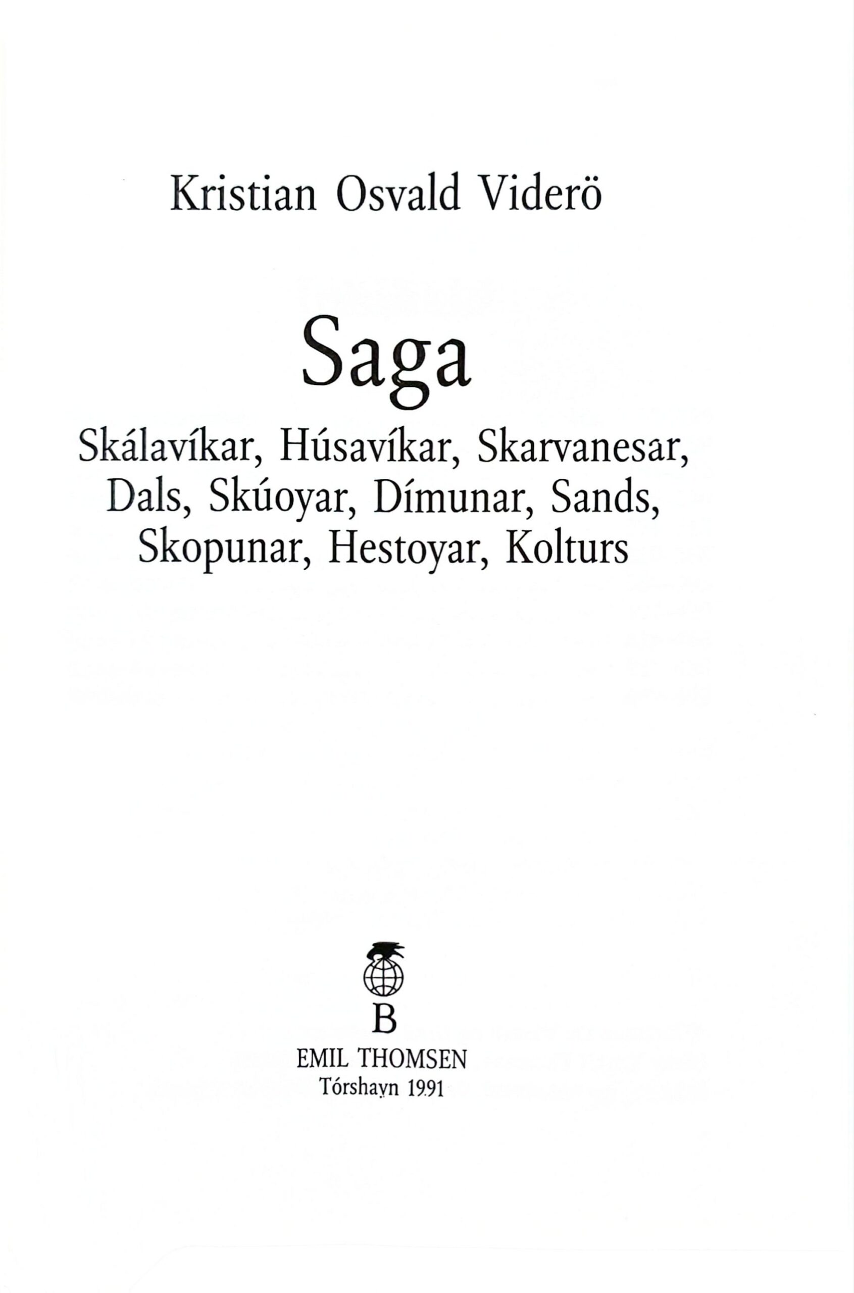 Saga Skálavíkar, Húsavíkar, Skarvanesar, Dals, Skúoyar, Dímunar, Sands, Skopunar, Hestoyar, Kolturs.