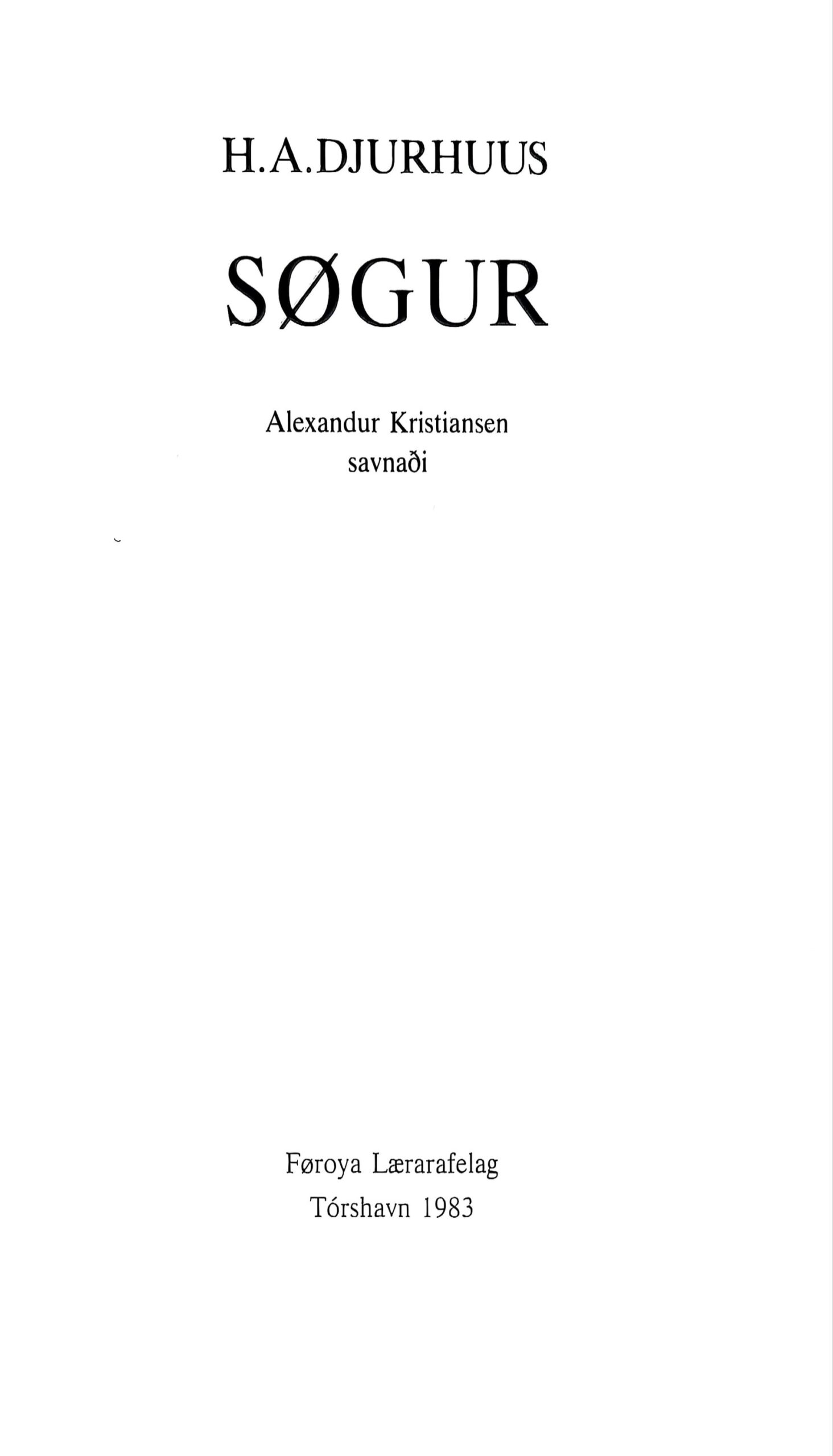 Søgur, Hans A. Djurhuus, 1983