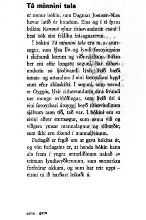 Úr: Árni Dahl: Bókmentasøga I-III. Fannir. 1980-83.