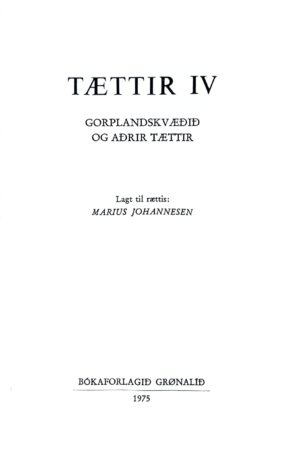Tættir 4 Útgivin: 1975 – Útgevari: Bókaforlagið Grønalíð (Marius Johannesen) Síðutal: 99 Standur: góður Perma: í bleytari permu