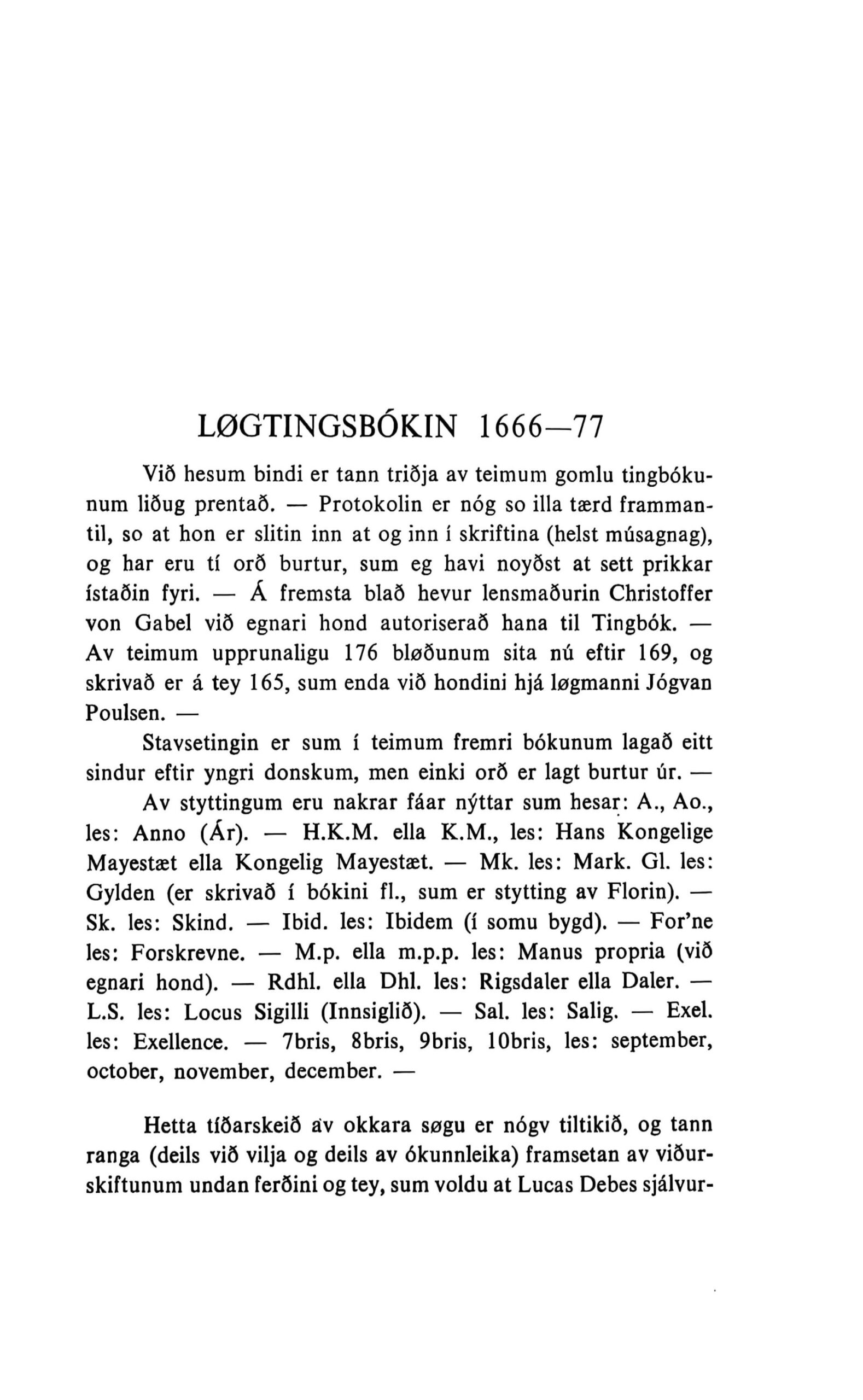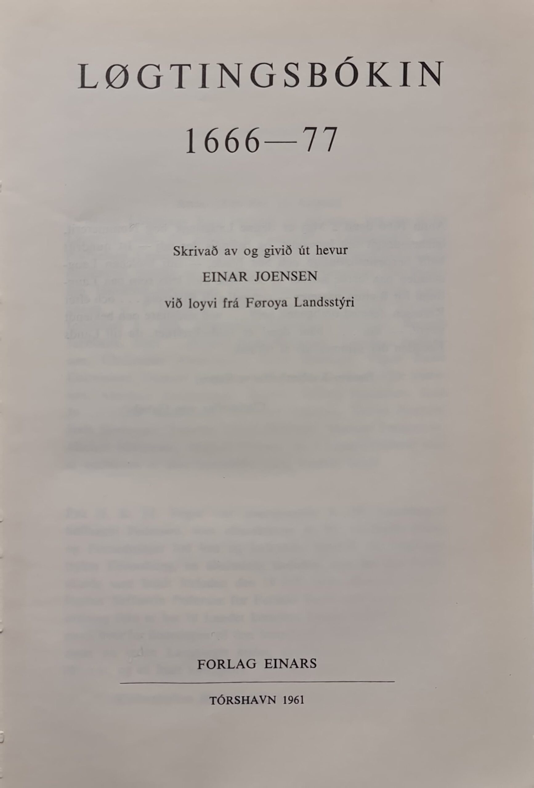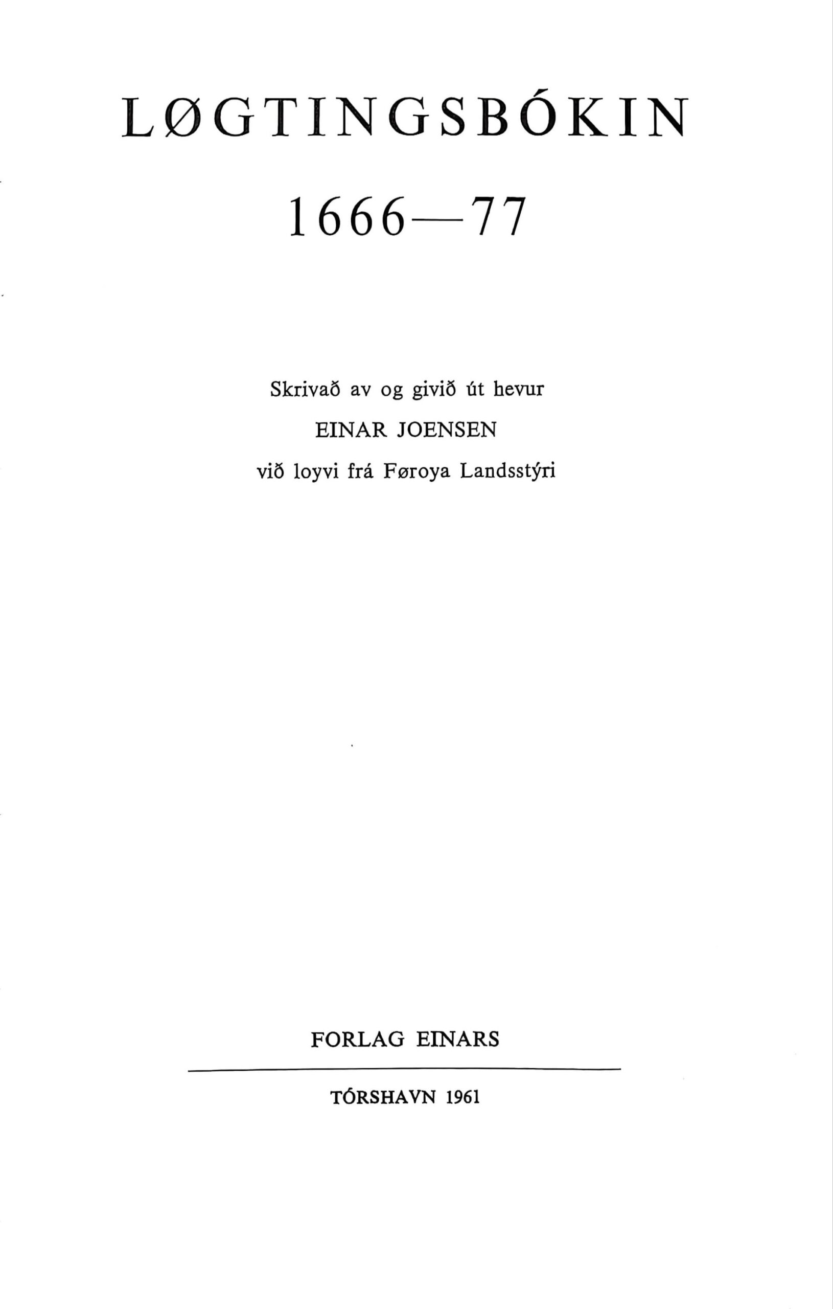 Tingbókin 1666 – 77, Einar Joensen, 1961
