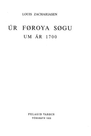 Úr Føroya søgu um ár 1700, Louis Zachariasen, 1952Úr Føroya søgu um ár 1700, Louis Zachariasen, 1952