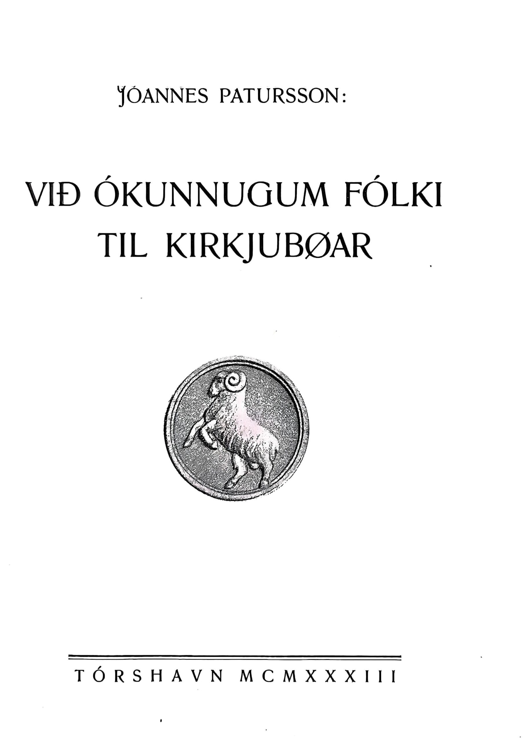 Við ókunnugum fólki til Kirkjubøar, Jóannes Patursson, 1933