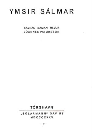 Tags: 1920 - 1929, 1925, Føroyskt, Patursson Jóannes, Sálmar, Yrkingar
